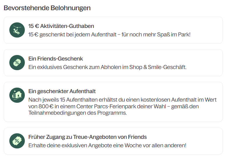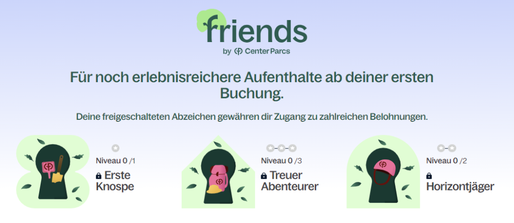 Auch im Center Parcs Allgäu | Ferienpark Leutkirch gibt es die Friends-Vorteile für treue Center Parcs Kunden. Das Friends-Programm (Friends-Vorteile) von Center Parcs belohnt treue Gäste mit Extra-Vorteilen. Das neue Friends-Programm ab Dezember 2025 wurde umfassend verändert und ich stelle hier die aktuelle Version vor. Der ursprüngliche Beitrag ist vom März 2023.